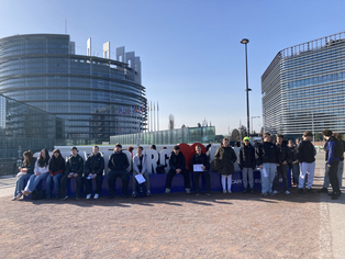 Letzte Woche, am Donnerstag, den 05.03.2026, waren wir mit unseren Französischkursen der Eingangsklasse und der Jahrgangsstufe 1 erneut in Straßburg zu Gast. Es war bereits das dritte Treffen mit einer Klasse des Lycée Marcel Rudloff: Im Oktober hatten wir uns im Lycée in Straßburg kennengelernt, im November folgte der Gegenbesuch bei uns an der HLS. Bei diesen ersten beiden Treffen stand das gegenseitige Kennenlernen im Mittelpunkt: Wir erkundeten die jeweiligen Schulen und erarbeiteten in internationalen Teams kleine Präsentationen zu Alltagsthemen wie Musik, Kleidung, Schule und Film.