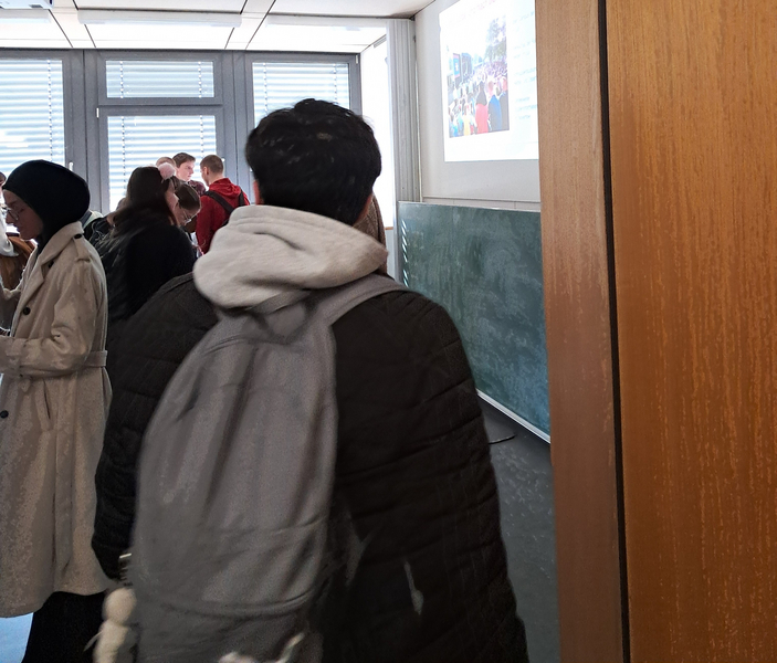 Letzte Woche, am Donnerstag, den 05.03.2026, waren wir mit unseren Französischkursen der Eingangsklasse und der Jahrgangsstufe 1 erneut in Straßburg zu Gast. Es war bereits das dritte Treffen mit einer Klasse des Lycée Marcel Rudloff: Im Oktober hatten wir uns im Lycée in Straßburg kennengelernt, im November folgte der Gegenbesuch bei uns an der HLS. Bei diesen ersten beiden Treffen stand das gegenseitige Kennenlernen im Mittelpunkt: Wir erkundeten die jeweiligen Schulen und erarbeiteten in internationalen Teams kleine Präsentationen zu Alltagsthemen wie Musik, Kleidung, Schule und Film.