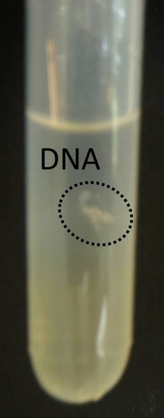 Die DNA befindet sich in fast jeder Zelle des menschlichen Körpers. Für unseren Versuch haben wir Zellen aus der eigenen Mundschleimhaut durch vorsichtiges Abschaben entnommen und sie anschließend zerstört, um die DNA aus dem Zellkern herausholen zu können. Durch Zusatz verschiedener Enzyme und Chemikalien trennt man sie dann von allen anderen Zellbestandteilen ab.